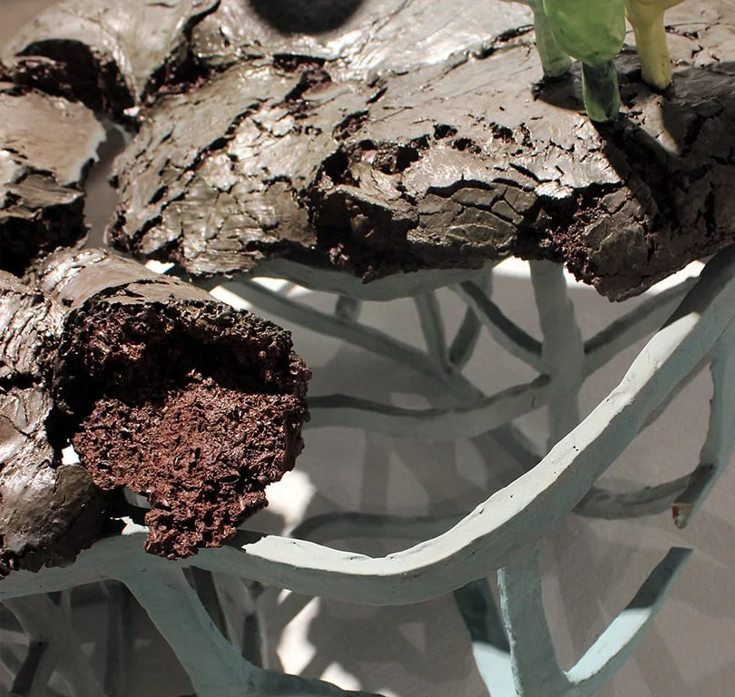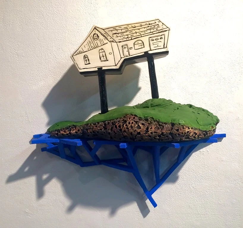 Growing up in the suburbs, I saw the effects of the sprawling suburban landscape; I observed a shift from open and natural spaces to engineered environments. Land, which I once knew as forest, a place for retreat from the fenced in backyard was transformed into subdivisions, parking lots, and infrastructure. This observation raises the question: How has the perception our natural world shifted? I marvel at the beauty of the natural landscape and feel compelled share my viewpoint on issues regarding overdevelopment through my ceramics and mixed media sculptures. In using these materials there is duality in the origins of the material and content, and through them I build artificial versions of already artificial landscape.